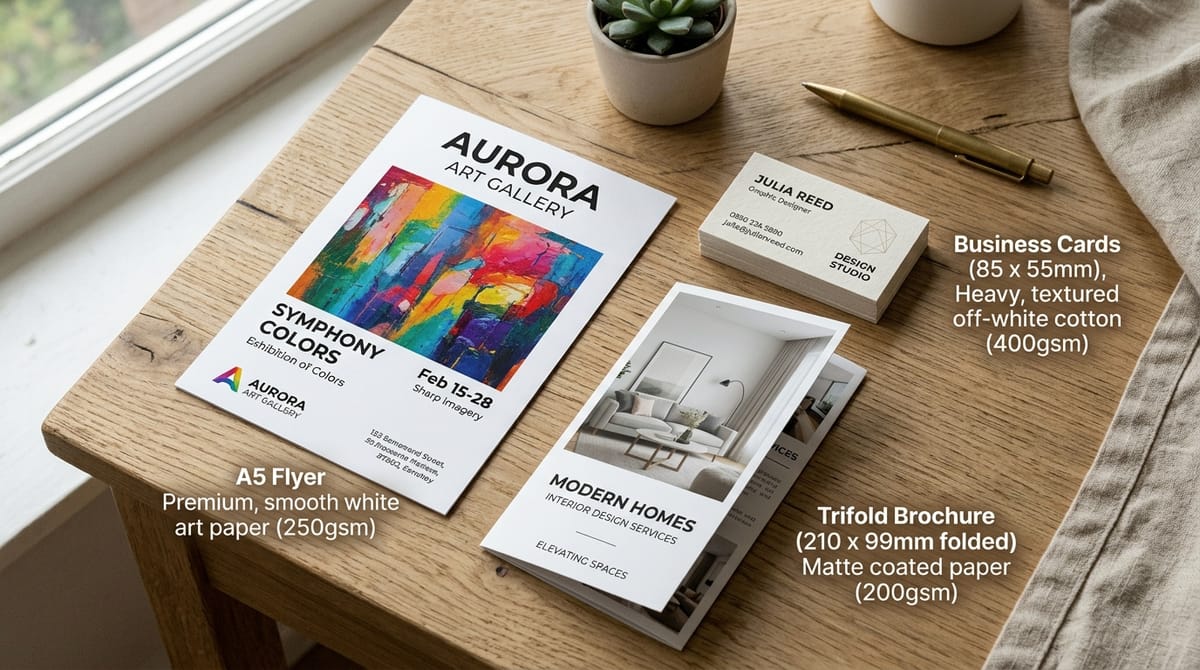 - 후가공 호환성: UV 코팅, 박 인쇄, 형압 등 가능한 용지가 정해져 있음